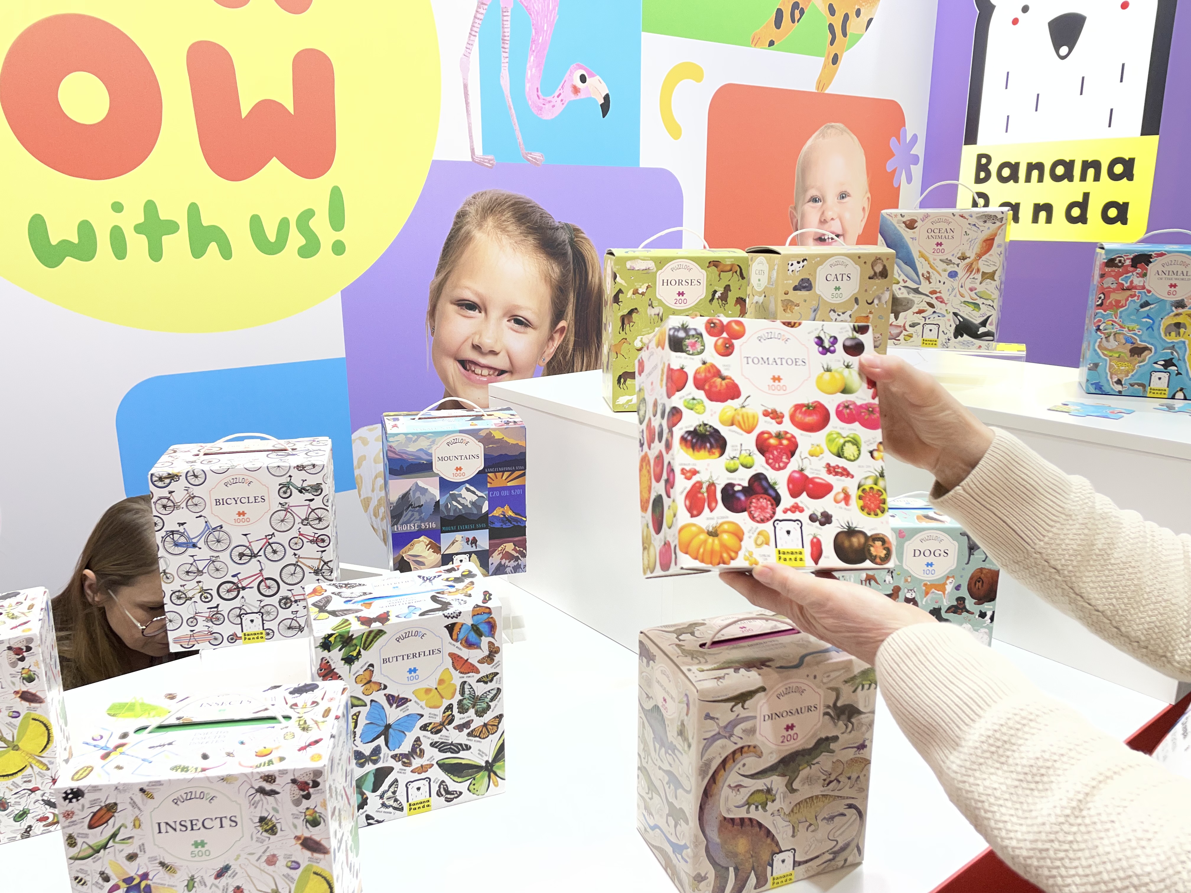 V loňském roce jsme na veletrhu objevili polského výrobce puzzle a her značky Banana Panda. Jejich sortiment včetně novinek jsme si mohli opět podrobně prohlédnout, protože nezapomínají mít na ukázku vždy složeno to, co je v krabicích. Nejvíce nás překvapila úspěšnost puzzle u řady puzzlove s obrázky různých druhů rajčat, a tak se moc těšíme, až dorazí i k nám na náš eshop. Osobně se těšíme na další obrázek z této řady a to motýlů, které milujeme a obdivujeme. Na eshop jsem pro vás přivezli jeden vzorek z této řady a to Dinosaury.