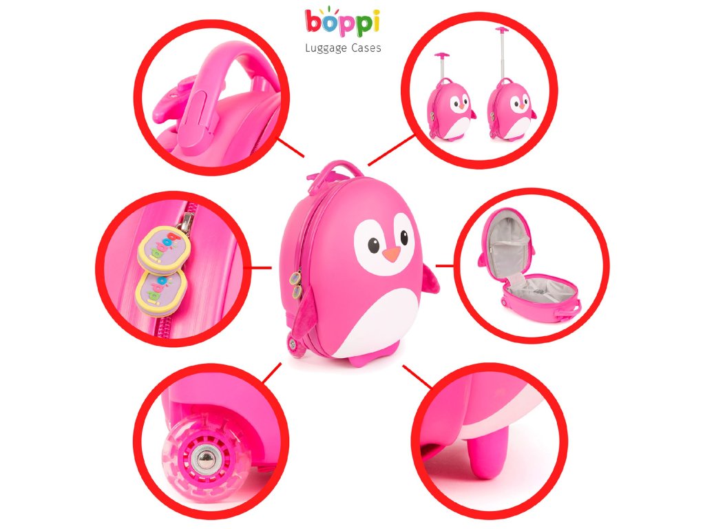 Dětský kufr boppi na kolečkách je nejen praktickým, ale také zábavným společníkem pro vaše děti na cestách. Stylový kufr je navržen tak, aby přitahoval pozornost a zároveň byl funkční.