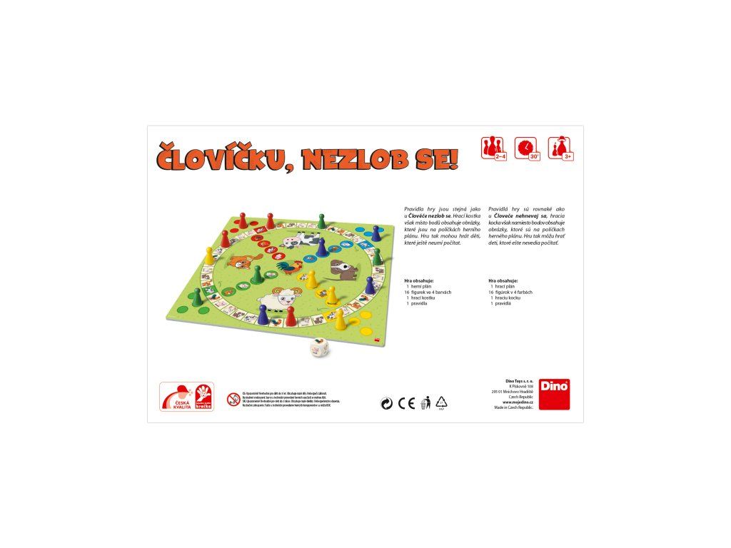 Umíte se nezlobit? Ukažte to i svým ratolestem při člobrdu pro nejmenší. Obrázková kostka vám bude ukazovat, kam se posunout po herním plánu, a pomůže vám dostat všechny figurky do domečku. Děti si při hře osvojí základy taktiky, naučí se vyrovnávat s dílem náhody a když budou chtít, mohou zkoušet i první počty.