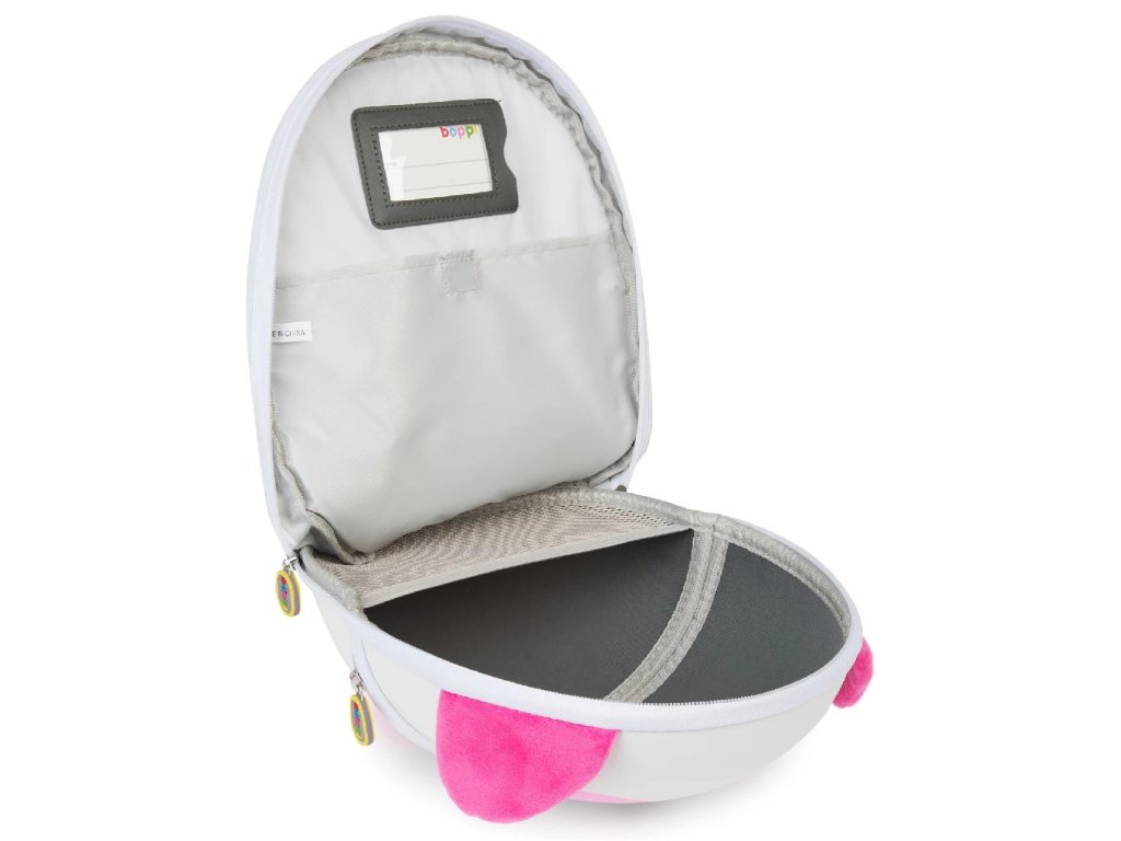 Mají Nastavitelné polstrované ramenní popruhy s centrálním klipovým postrojem nabízejí pohodlí a díky 1 m odnímatelnému vycházkovému popruhu jsou batohy boppi vhodné i na rušných místech. Přístup na dvojitý zip otevírá celkovou úložnou kapacitu 4 litry s elastickou síťovanou kapsou a kapsou na cennosti. Horní rukojeť umožňuje ruční přenášení nebo zavěšení na háček. Díky robustnímu vnějšímu pevnému plášti jsou batohy odolné a každý batoh je dodáván s vnitřní jmenovkou a prošívaným držákem.