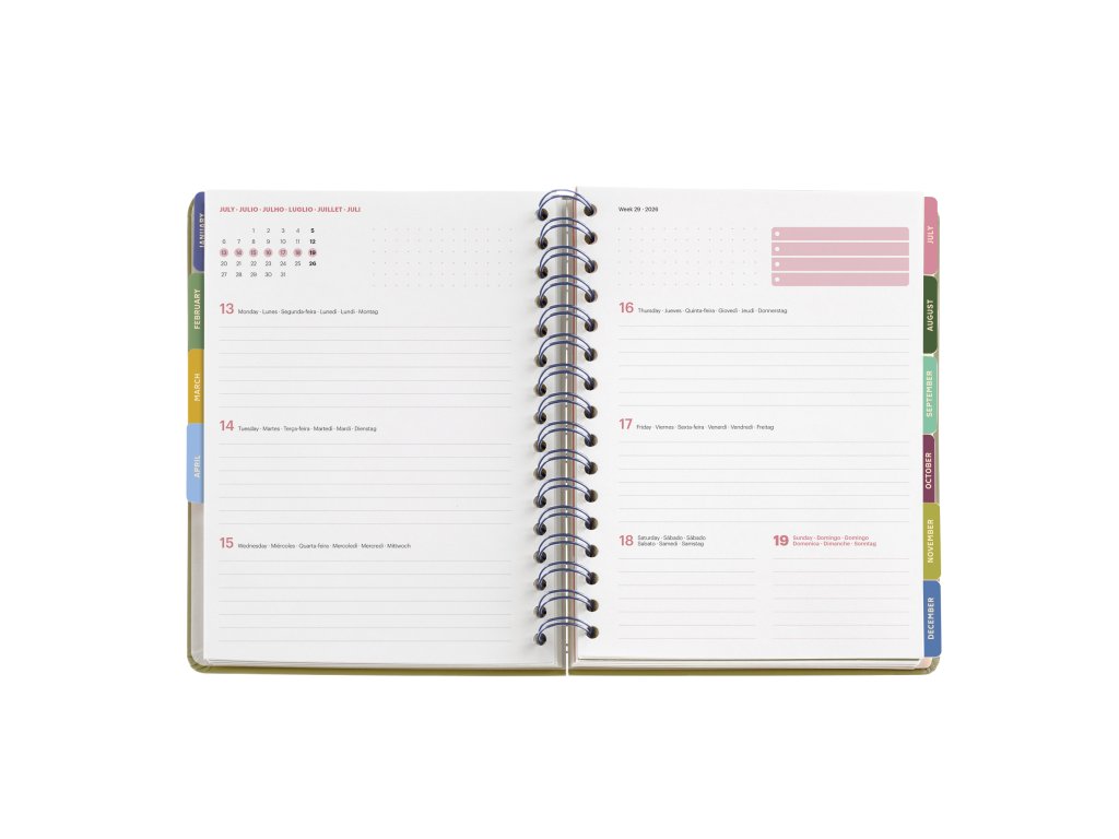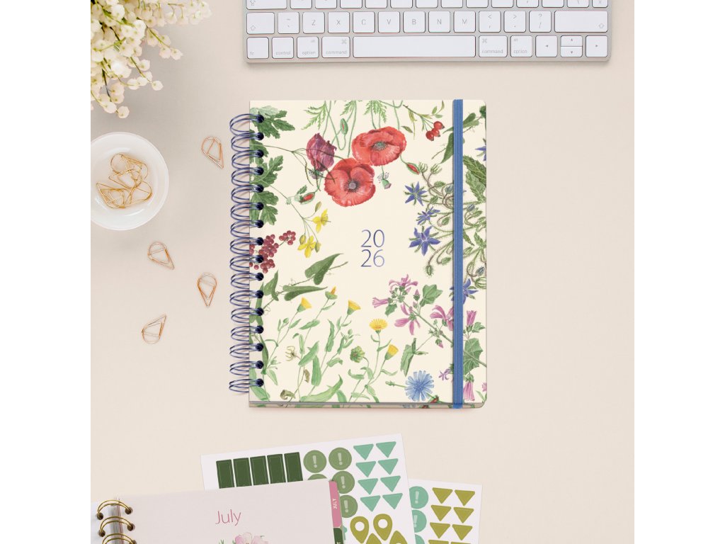 Diář Zahrada od MiguelRius obsahuje rozdělení na jednotlivé měsíce tvrdými deskami s obrázky lučních květin