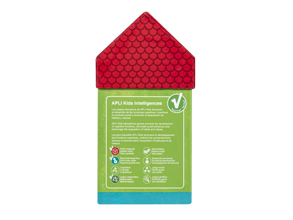 Velmi originální puzzle v zábavné krabičce ve tvaru malého domečku. Každá krabice obsahuje 30 kusů různých velikostí. Snadná manipulace pro nejmenší: odolné, bezpečné a snadno manipulovatelné díly díky jejich velikosti a zaobleným hranám. Karton o tloušťce 2 mm s lesklou povrchovou úpravou a Indiana na zadní straně.