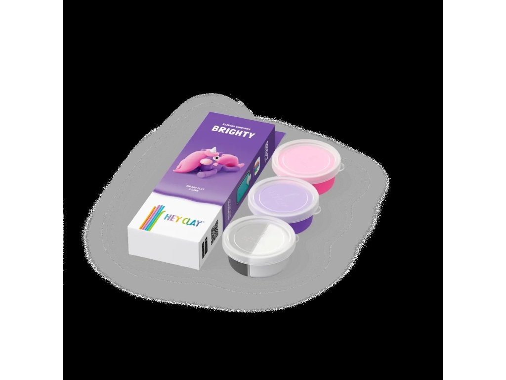 Sada HEY CLAY obsahuje 3 nádobky s měkkou, jemnou a voňavou modelínou a přístupový kód do aplikace pro zakoupenu řadu. Barvy nacházející se v balení Vám umožní vytvořit 1 postavičku jednorožce Brighty