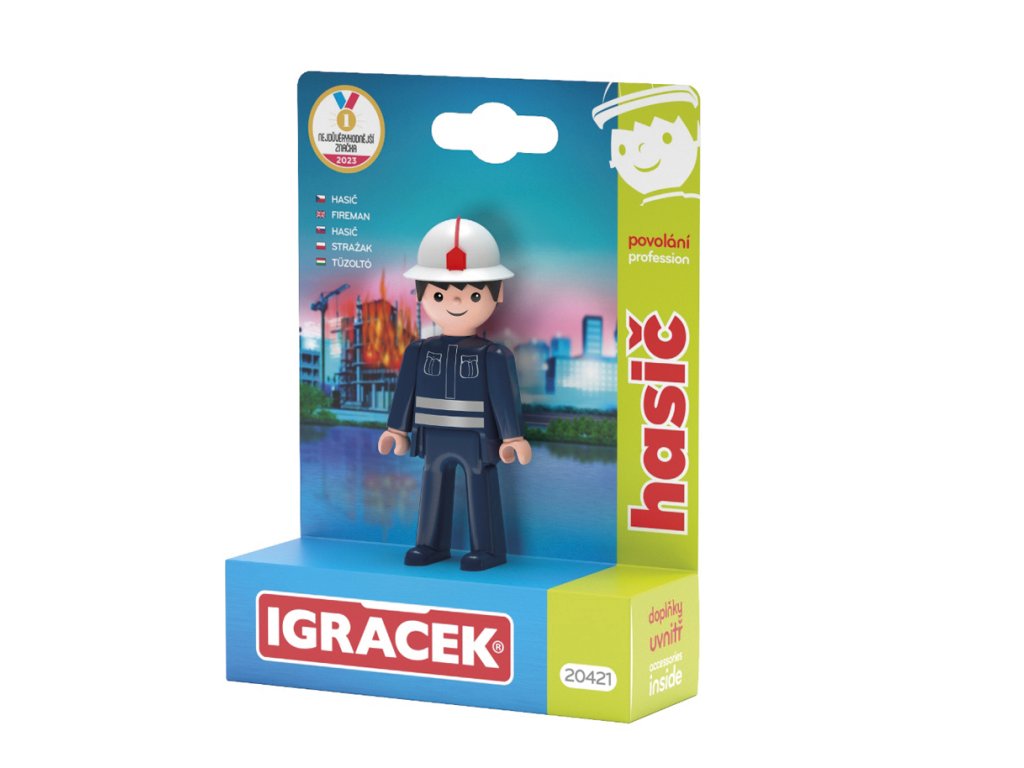 Spěchej, bojuj, rozviň hadice a has. Odvážný hasič se sekerkou a tlampačem se nezalekne žádného ohně a nebezpečí. Hračka rozvíjí jemnou motoriku a fantazii dětí. Legendární postavička od roku 1976. Vyrobeno v ČR.