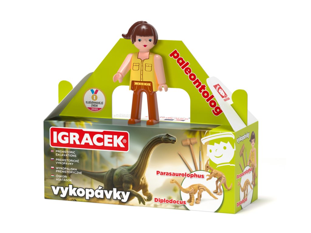 Staň se zvídavým paleontologem a objev spolu s Igráčkem dávno vyhynulé dinosaury. S pomocí paleontologického náčiní vykopej ze dvou kamenů kostry Parasaurolophuse a Diplodocuse. Dobrodružství začíná, tak neváhej a vstup do fascinujícího pravěkého světa. Vyrobeno v ČR.