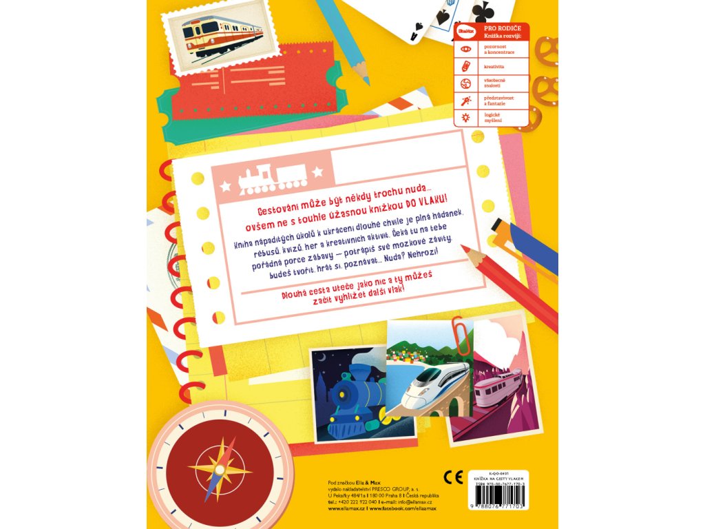 Cestování může být někdy trochu otrava… ovšem ne s touhle úžasnou knížkou DO VLAKU, která je plná nápaditých úkolů k ukrácení dlouhých chvílí! Najdete v ní spoustu hádanek, zapeklitých rébusů, zábavných kvízů, her, kreativních aktivit i zajímavých informací z oblasti cestování vlakem. Čeká tu na vás pořádná porce zábavy – potrápíte své hlavičky, budete tvořit, hrát si, poznávat… Nuda? Nehrozí! Dlouhá cesta vlakem uteče jako nic a vy můžete začít vyhlížet další výlet! Práce s knihou navíc rozvíjí představivost, fantazii a kreativitu, ale také pozornost, koncentraci a logické myšlení.