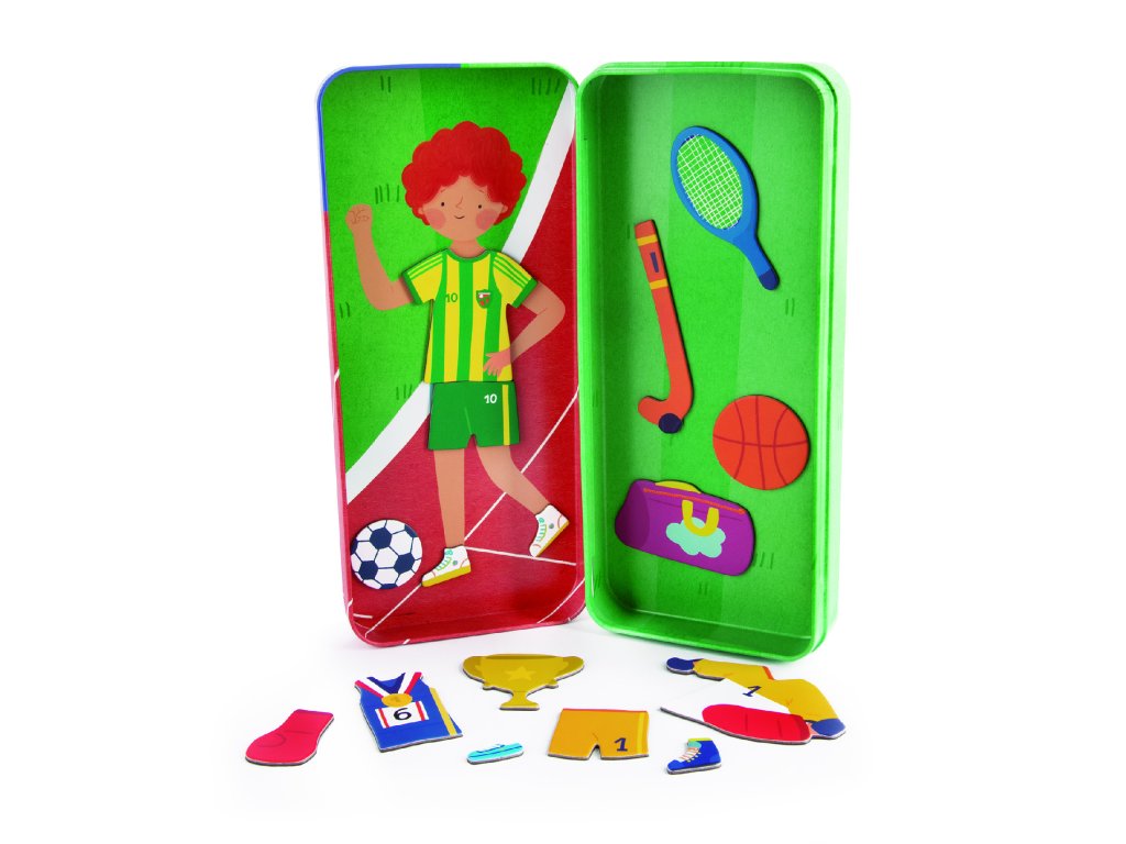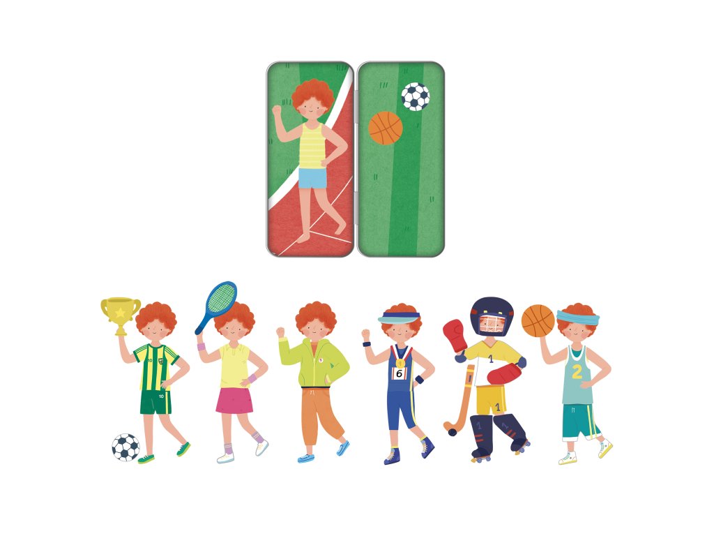 Oblečte postavy tolikrát, kolikrát chcete! Užijte si vytváření sportovního oblečení pro různé druhy sportu. Zabavte děti vytvářením tenistů, fotbalistů nebo hokejistů na celé hodiny. Krabička je ideální velikost na cesty do batohu, aktovky, nebo je do kapsy.