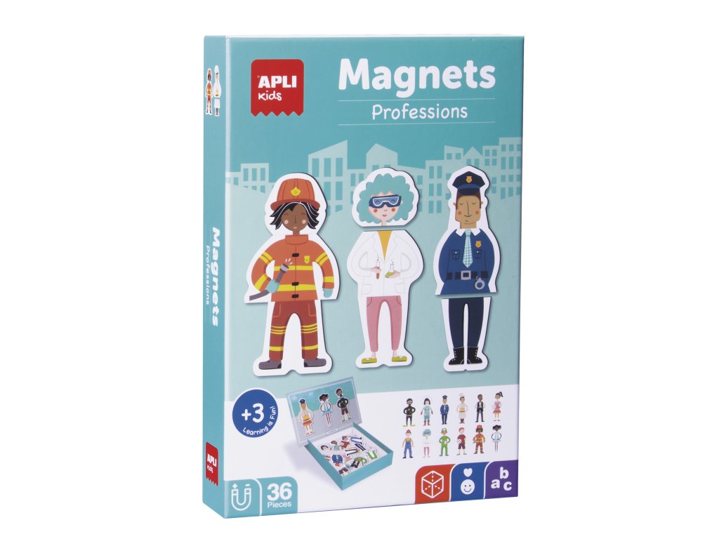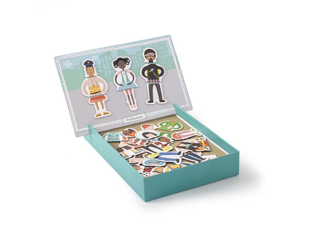 Objevujte svět různých lidských profesí a řemesel a skládejte pomocí magnetických dílků oblečení kuchaře, sestřičky nebo hasiče. Poznávejte s dětmi jednotlivé profese a učte je rozlišit, co každá profese ke své práci potřebuje.