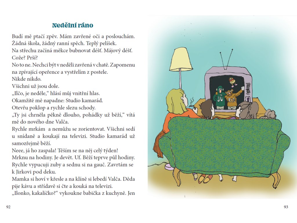 Celá knížka přímo dýchá atmosférou, kterou zná většina z nás; bezstarostností, dětskou fantazií a prázdninovým (či víkendovým) kamarádstvím. Tuto atmosféru skvěle podtrhují stylizované ilustrace. Ilustrátorka výborně vystihla pohled na svět z pozice desetileté dívky, hlavní hrdinky Ilči. Ilustrace i text tak tvoří dokonalou souhru. Porozumění autorky dětskému světu se projevuje i v přímé řeči, kde má každá z postav svoji osobitou povahu. Vyprávění nepostrádá lehkost a vtip, kterému děti v tomto věku snadno porozumí. Líčení krajiny i jednotlivých příhod má spád, není zbytečně rozvláčné, a bude tak zaručeně bavit i dnešního netrpělivého dětského čtenáře. Příběh je celý převyprávěn v přítomném čase, i to čtenáře doslova vtáhne do děje. Po přečtení bude mít pocit, jako by tyto příhody sám zažil. Knihu bych mohla přirovnat k "Dětem z Bullerbynu", s tím rozdílem, že děj je zasazený do českého venkova. O to více bude souznít s našimi čtenáři. Ačkoli je příběh zasazen do doby dvou, možná tří generací nazpět, je nadčasový. Podobná dobrodružství mohou zažívat děti i dnes. Kéž je jim tato nová knížka inspirací!