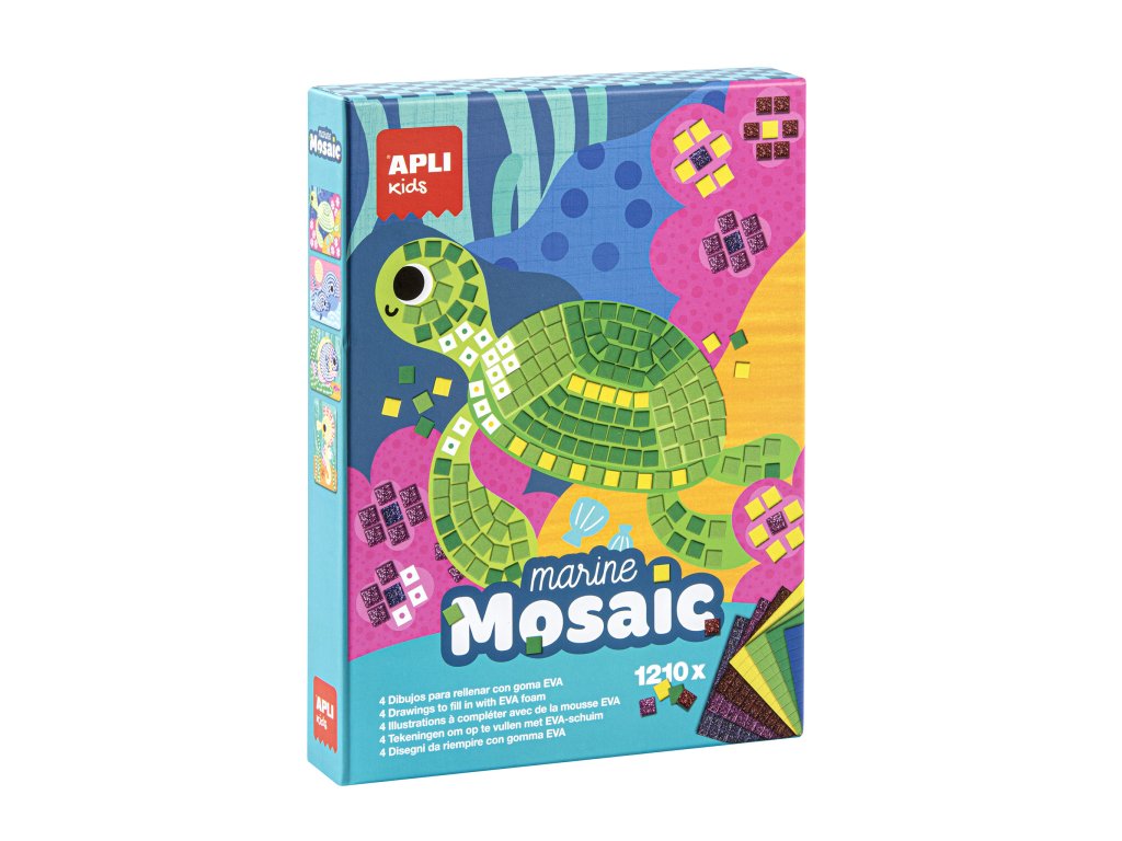 Produkt obsahuje předlohu, předem nařezané lepicí pěnové barevné čtverečky v barvách a 4obrázky: mořský koník a ryby.