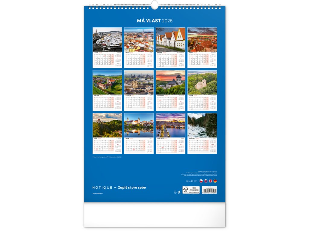 NOTIQUE Nástěnný kalendář Má vlast 2026, 33 x 46 cm