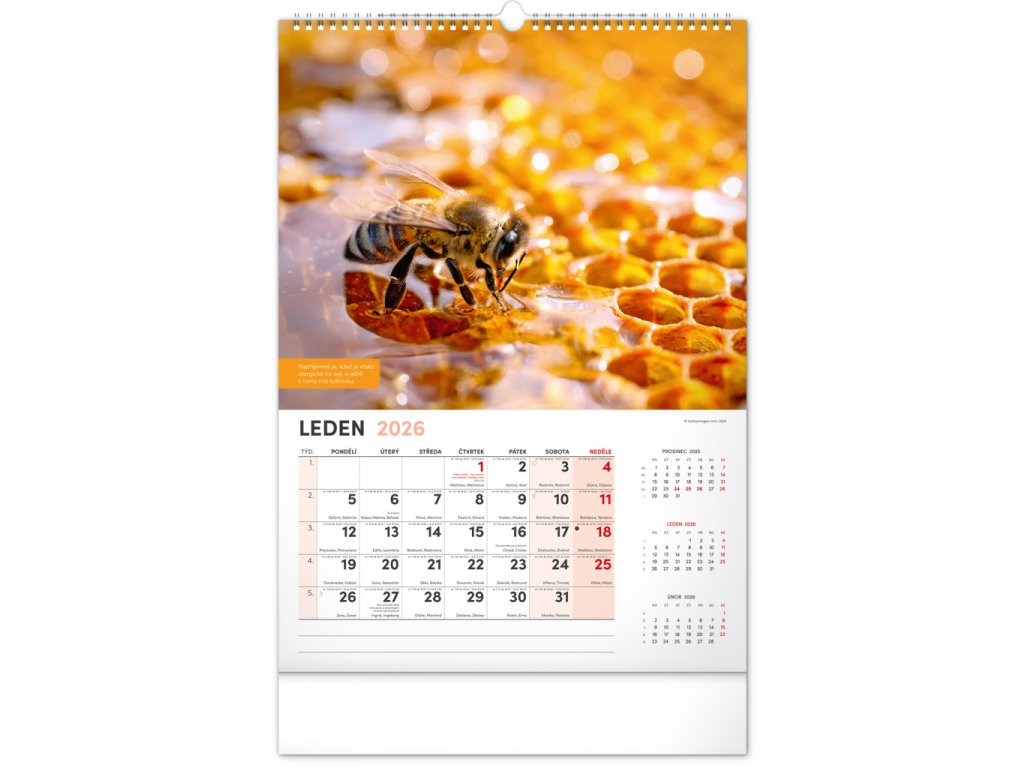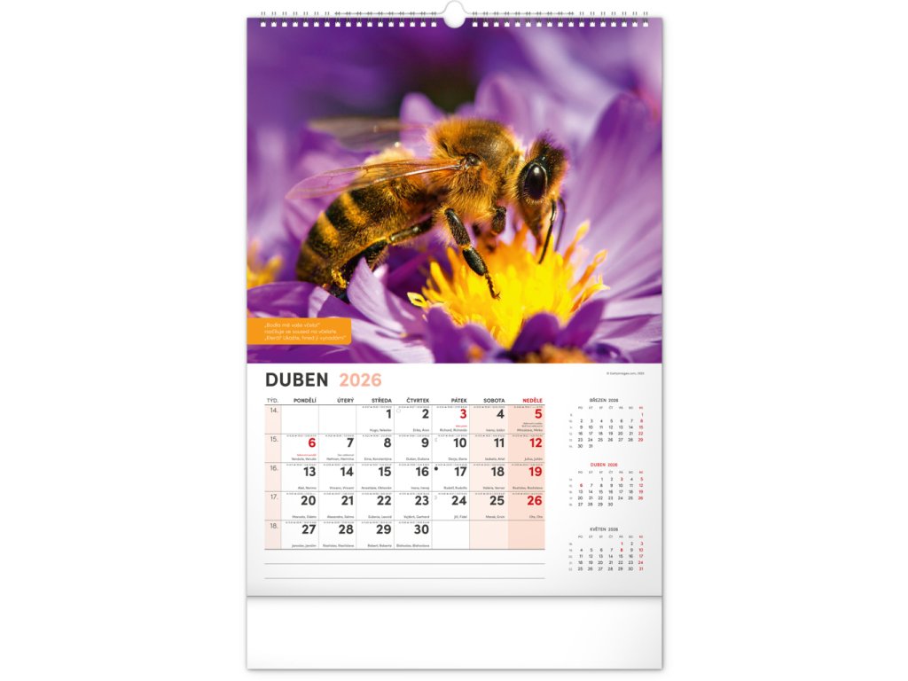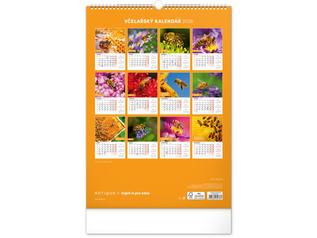 NOTIQUE Nástěnný Včelařský kalendář 2026, 33 x 46 cm