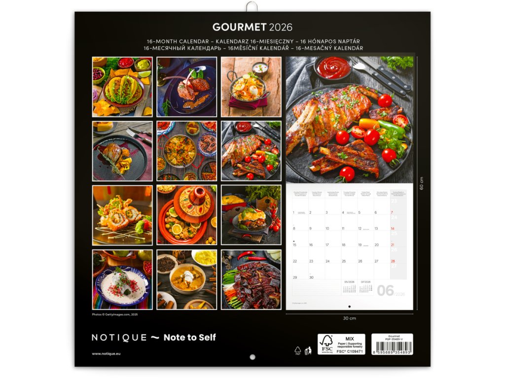 NOTIQUE Poznámkový kalendář Gourmet 2026, 30 x 30 cm