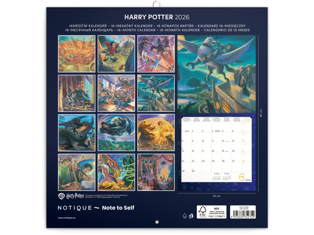 NOTIQUE Poznámkový kalendář Harry Potter 2026, 30 x 30 cm
