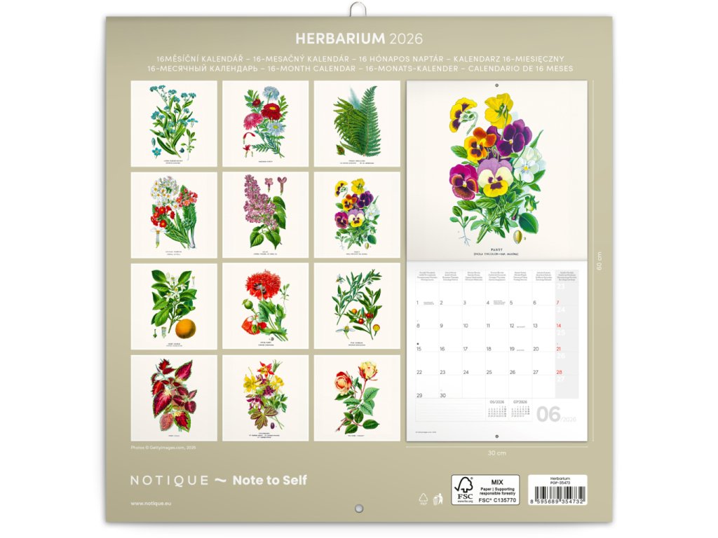 NOTIQUE Poznámkový kalendář Herbář 2026, 30 x 30 cm
