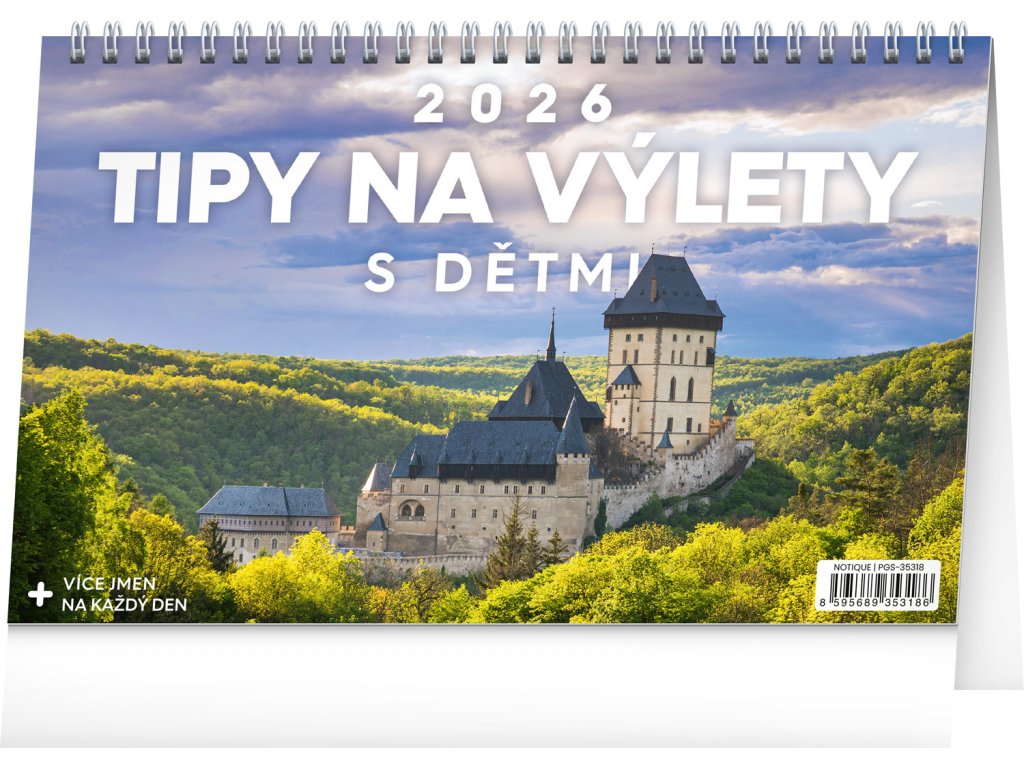 Také se vám stává, že nevíte, kam o víkendu vyrazit na výlet? V našem kalendáři naleznete 53 tipů pro všechny, kteří rádi podniknou výlet s celou rodinou. Stačí si jen vybrat cíl vaší příští cesty. Stolní kalendář s českým kalendáriem obsahuje svátky a památné dny, měsíční fáze a přehled na celý rok 2026 a 2027.