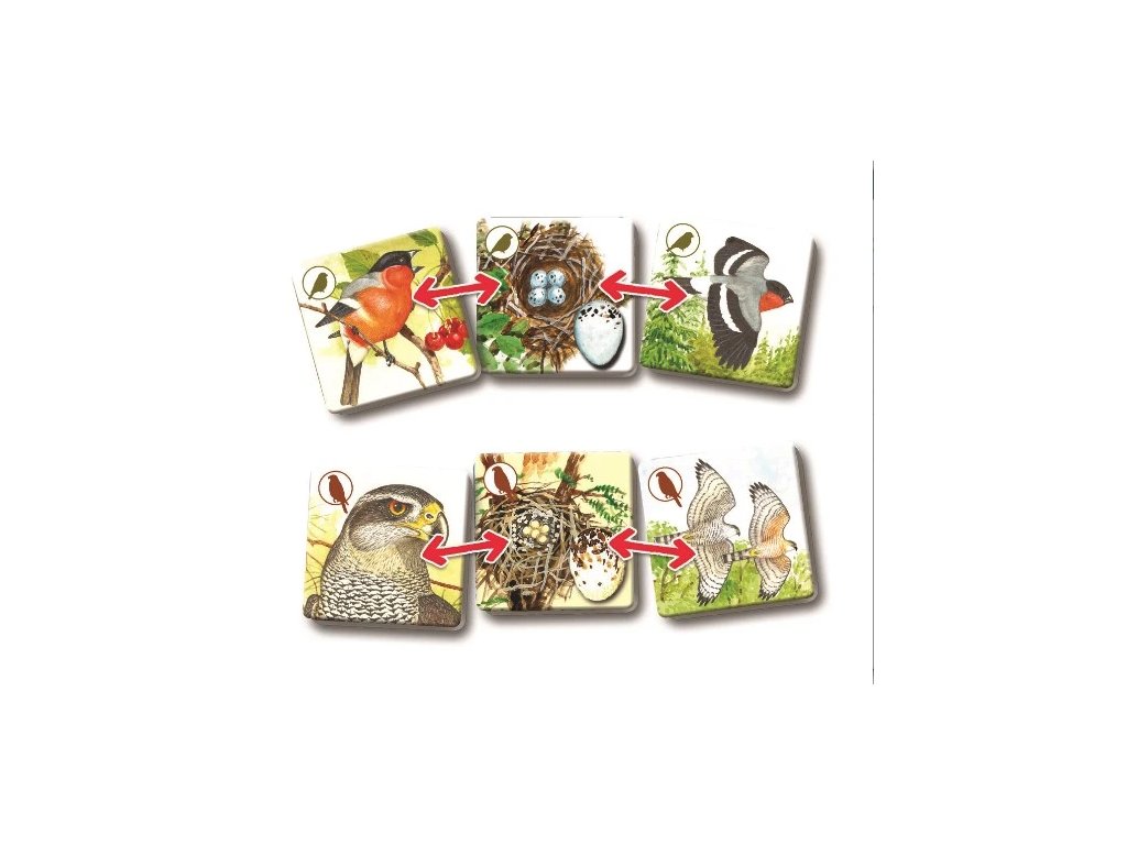Pexetrio Ptáci je didaktická a zábavná hra, ve které se naučíte pojmenovat různé ptáky, poznávat jejich hnízda s vejci a letovou podobu