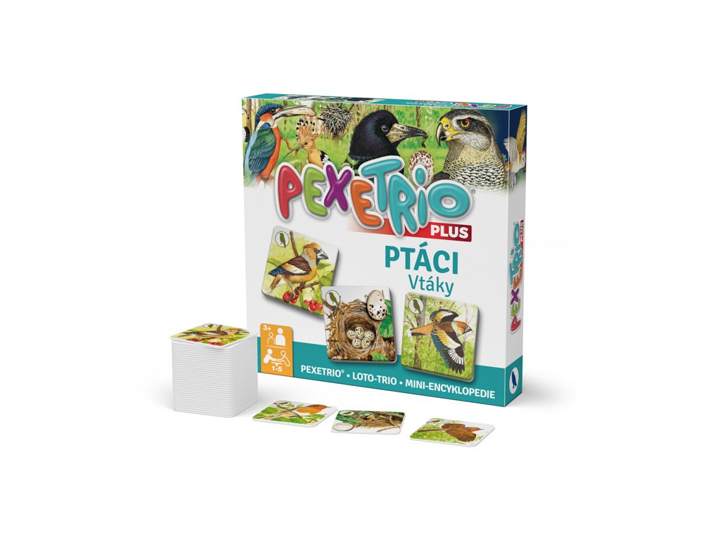Pexetrio PTÁCI je zábavná hra inspirovaná pexesem, která děti zároveň i vzdělává. Děti se naučí poznávat různé ptáky, jejich hnízda s vejci a jejich letovou podobu podle hesla „škola hrou“. Kromě toho, že si děti osvojí ptáky zábavným způsobem, hra také napomáhá rozvíjet jejich logické myšlení a trénovat paměť hledáním trojice kartiček s různými ptáky, jejich hnízdy s vejci a jejich letovou podobou.