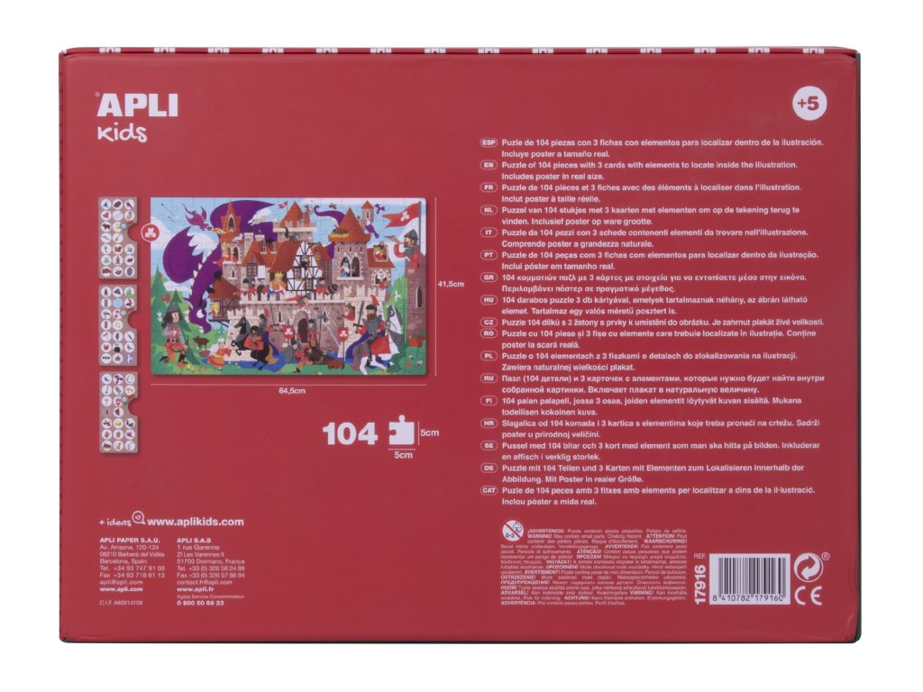 Vstupte s dětmi do pohádkového světa a poskládejte obrázek pohádkového hradu a užijte si spoustu zábavy s těmito pohádkovými puzzle. Nechte pak děti hledat v obrázku detaily z žetonů.