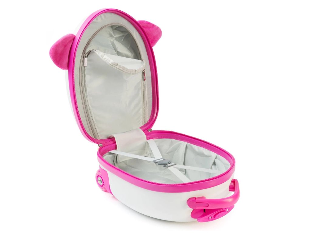 Kufry nabízejí celkovou kapacitu 17 litrů na oblečení, knihy, medvídky a hračky v hlavním prostoru, který má elastické balicí popruhy pro bezpečné uchycení věcí na svém místě a má vnitřní přihrádku s dvojitým zipem na volné předměty nebo cennosti.