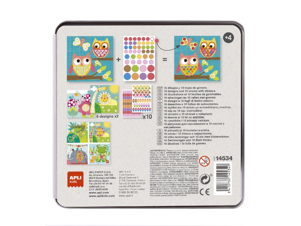 Produkt s originální prezentací a atraktivním designem: kovová krabice s exkluzivním designem APLI Kids, která se hodí i pro ukládání dětských předmětů. Hra určená pro nejmladší členy rodiny, doporučeno pro děti od 3 let.