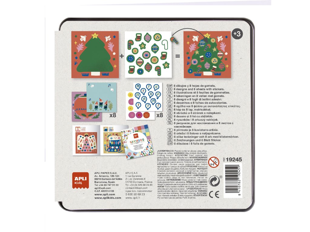 Milují vaše děti Vánoce? Pak tahle hra se samolepkami je pro ně ideální. Hodiny a hodiny mohou vytvářet své vlastní originální vánoční obrázky a těšit se tak na nejkrásnější večer v roce. Užijte si s dětmi čekání na Vánoce s touto skvělou samolepkovou hrou, kterou můžete pak schovat do plechové krabičky.
