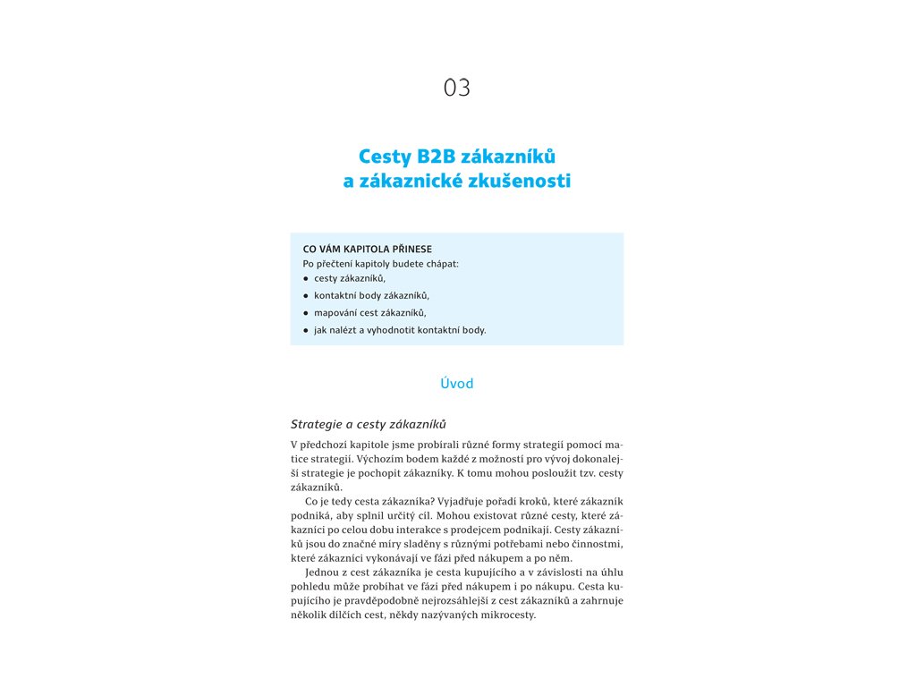 Příručka je výrazně prakticky zaměřená. Pomůže čtenáři pochopit i ty nejpokročilejší a nejsložitější koncepty B2B marketingu. Popisuje, jak integrovat nejnovější digitální metody do kritických procesů, jako jsou „lead generation“, udržení zákazníka či personalizace zákaznické zkušenosti. Kniha je nabitá případovými studiemi světových značek jako John Deere, Vodafone či Intuit, a je tak neocenitelným zdrojem informací pro všechny profesionály v oblasti B2B marketingu.