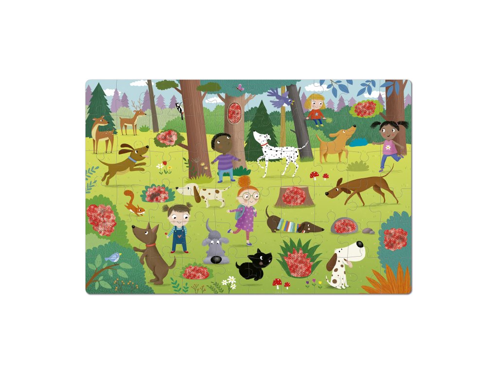 Zabavte děti skládáním obrázku s pejsky a hledání skrytých detailů pomocí kouzelných brýlí. Užijte si společně spoustu zábavy a objevování.