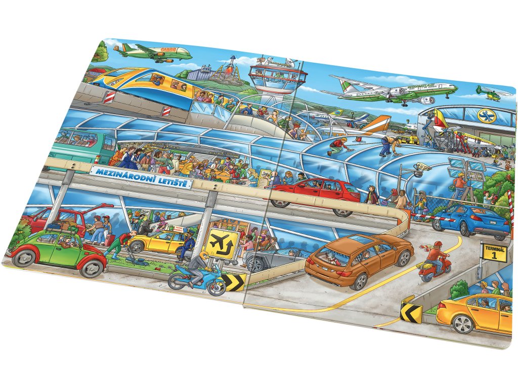 Na letišti se pořád něco děje! Kam se člověk podívá, všude se to hemží lidmi, kteří tu pracují, ale hlavně těmi, kteří někam cestují. Na stránkách téhle bohatě ilustrované knížky můžete sledovat příběhy některých z nich a doprovázet je na jejich cestách. Dozvíte se přitom, jak to chodí na letišti, prozkoumáte nejrůznější letadla a jedním z nich vzlétnete až do oblak. Nahlédnete do pilotní kabiny, do zavazadlového prostoru, ale i do jiných zákoutí, která obvykle zůstávají našim zraků skrytá. A svou dobrodružnou cestu zakončíte – jak jinak – na dovolené u moře!