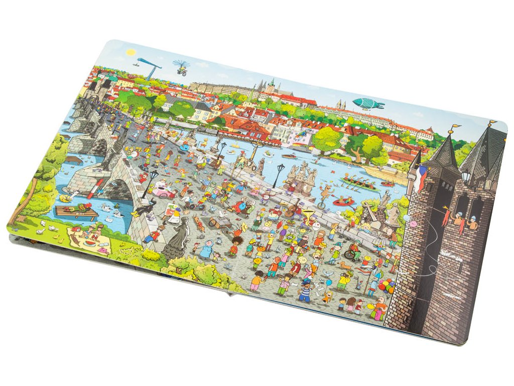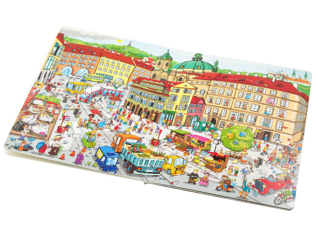 Velkoformátové leporelo o Praze, ve kterém se to obrázky a příběhy jen hemží