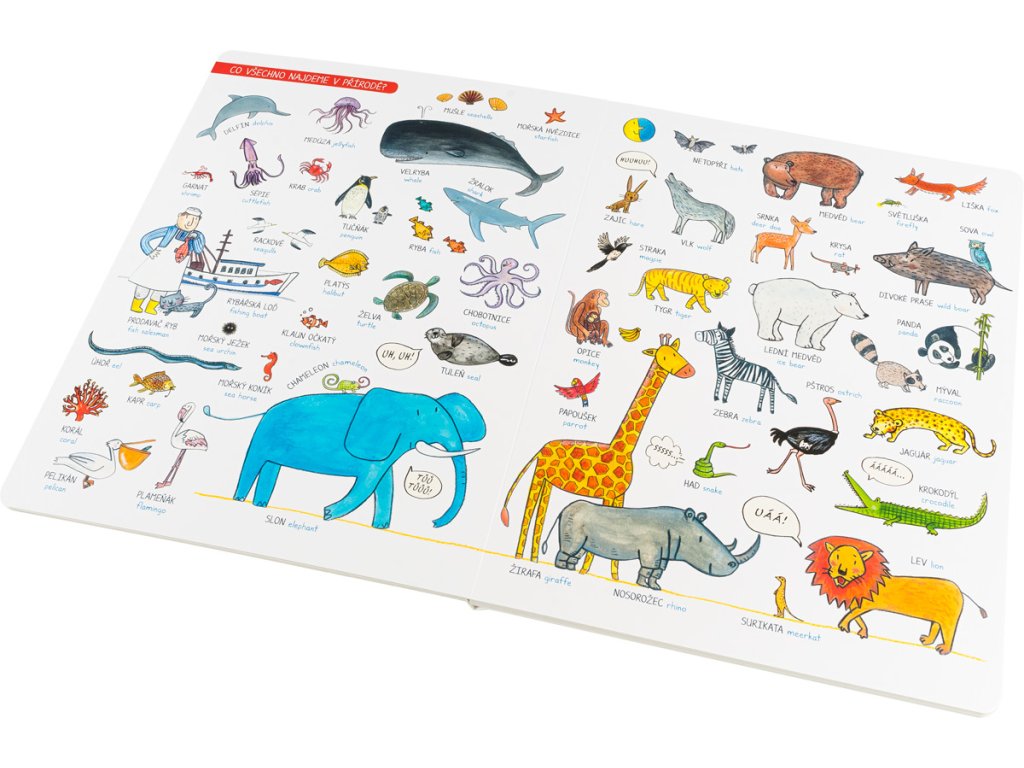 Tato velká obrázková knížka s veselými barevnými a „čtivými“ ilustracemi může malé čtenáře provázet celým předškolním obdobím a možná ještě déle... Nabízí nepřeberné možnosti využití. Dítě se nejprve učí poznávat a pojmenovávat jednotlivé předměty na obrázky